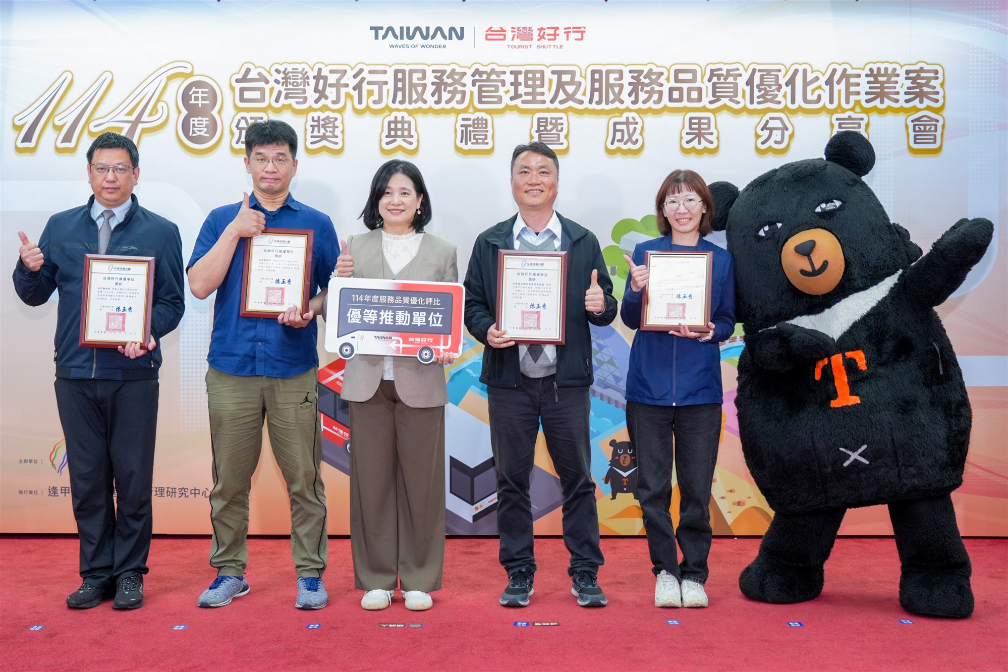 交通部觀光署辦理114年台灣好行服務管理及服務品質優化作業滿意度評比結果出爐了!金門縣政府及金門縣公共車船管理分別榮獲郵輪式推動單位及客運單位組優等,頒獎典禮於115年1月27日假觀光署台北旅服中心舉辦,由交通部觀光署陳玉秀署長親自頒獎,本縣由公共車船管理處處長楊沁杭代表領獎。