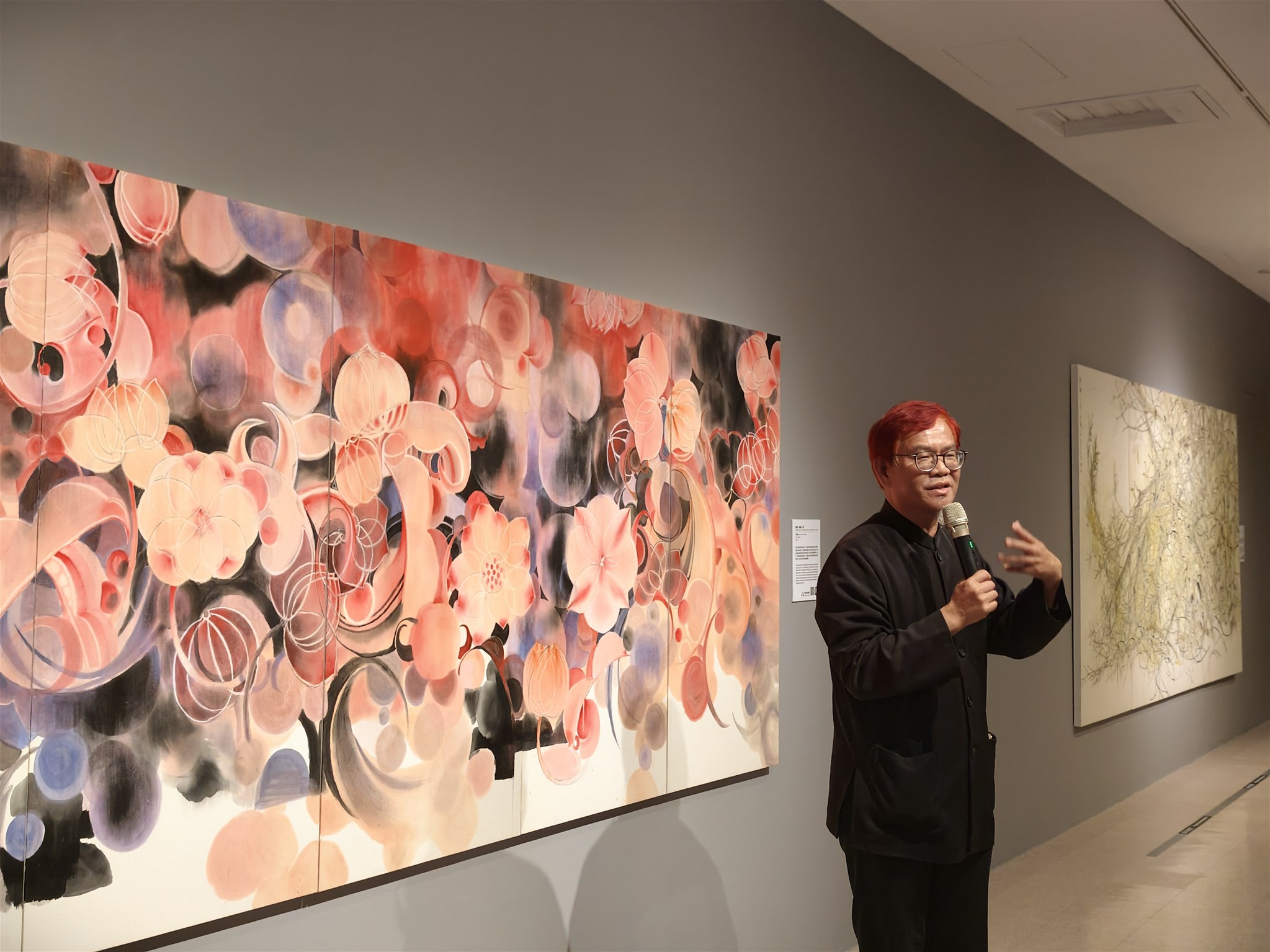 本次展覽匯集了藝術家莊連東創作歷程中的26件經典作品,以其獨特的藝術語彙和深刻的哲思,引領觀眾進入一場關於生命、存在與邊界的深度對話。莊連東教授在開幕致詞中表示:「傳統水墨畫以山水、花鳥、人物為題材,現代水墨則需要探討更多社會議題,我創作至今已餘50年,在創作過程中就是不斷地在決定這個『界』是否要跨出去,希望讓水墨繼續往前走,不要被時代淘汰,不要被思想限制而無法發展。」
